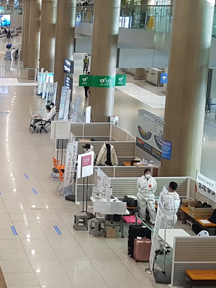 해외여행을 떠나는 승객들의 설렘으로 들썩였던 모습도 사라진지 오래다. 출국장은 텅 비었고, 환영객들로 북적이던 입국장은 하얀 방역복을 입은 군인들과 자치단체에서 파견된 공무원들의 일터가 됐다.
