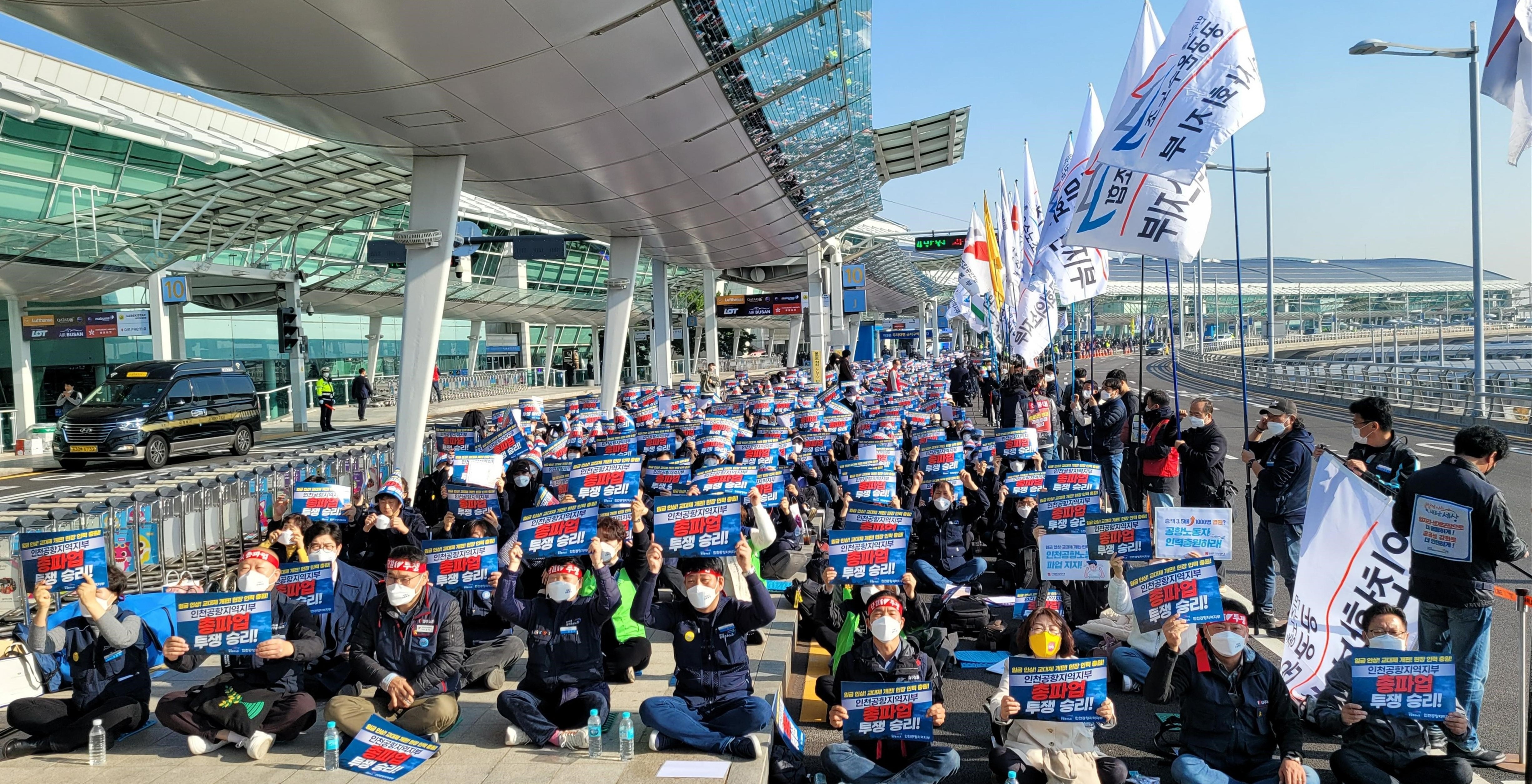 민주노총은 자회사 직원들의 열악한 처우 개선을 요구하며 지난달 28일 부분파업을 벌였다. 인천국제공항공사가 임금 총액 대비 12% 인상과 3조2교대인 근무를 인천국제공항공사 정규직처럼 4조2교대로 개편하고, 인력 충원 등에 대해 논의나 요구안에 제대로 답하지 않으면 오는 14일부터 무기한 전면 파업에 돌입하겠다고 밝혔다.