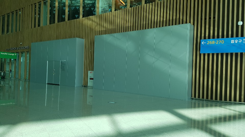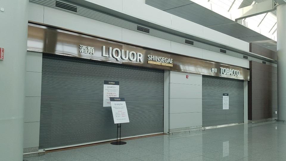 16만6000㎡ 규모의 탑승동은 이용객이 없어 한산하다 못해 적막했다. 양쪽 끝에 있는 면세점과 식당·카페 등에는 휴업 안내문이 붙어 있었다. 중앙에 문을 연 상점들도 고객이 없어 ‘개점휴업’ 상태이다. 코로나19 이전 탑승동에는 하루 200∼300여 대가 넘는 항공기가 운항됐지만, 지난 4일은 상하이 푸동을 운항하는 중국춘추항공의 여객기 1대만 운항됐다.