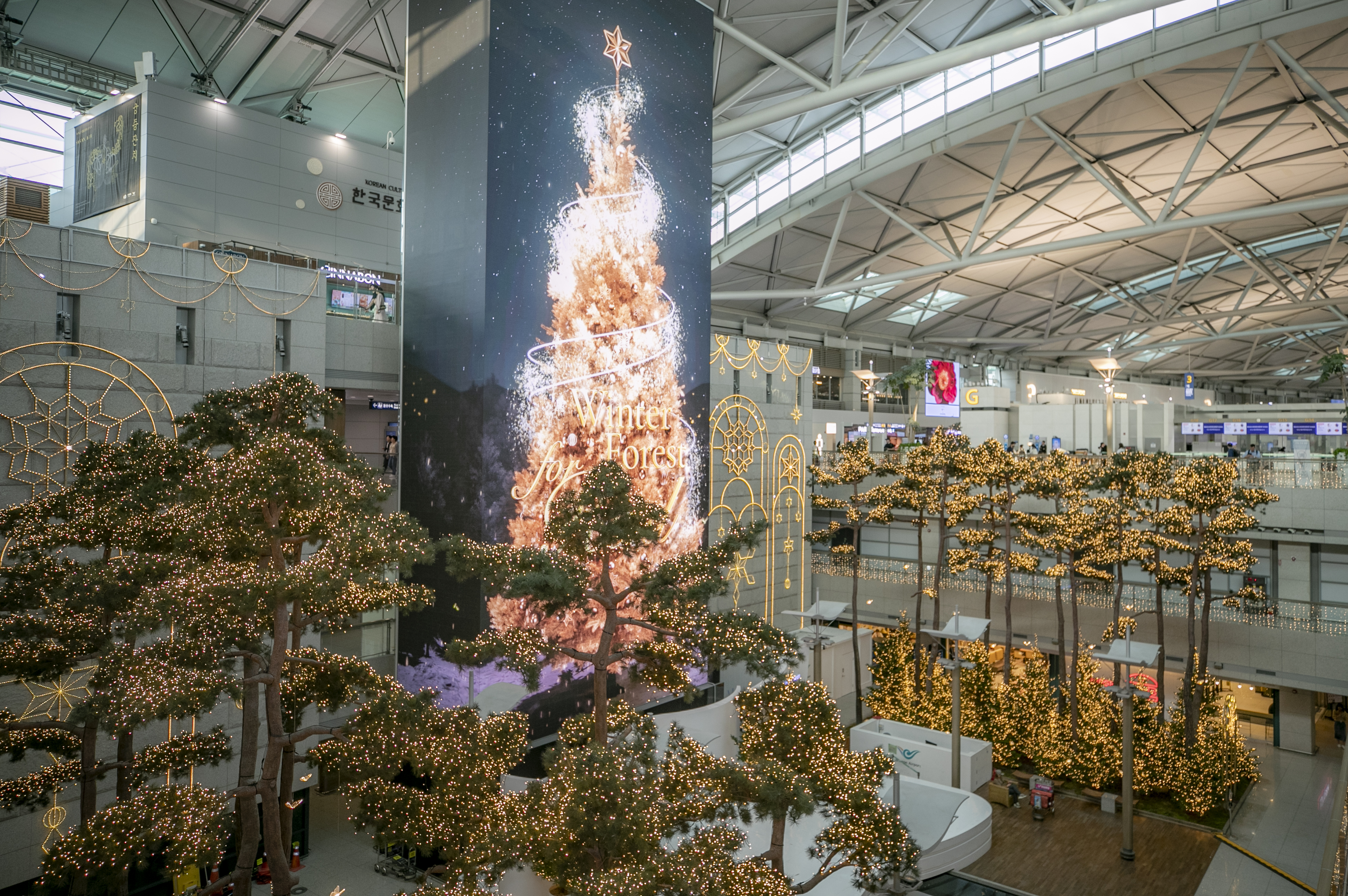 코로나19 사태를 이겨낸 인천공항에 연말을 맞아 화려한 조명장식이 연출됐다. 올해의 컨셉은 ‘Winter forest, for real(진짜 겨울 숲)’이다