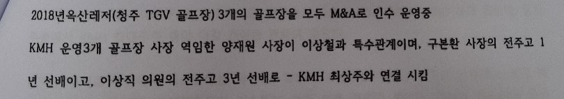 또한 임남수 인천공항공사 부사장은 향후 새 사장이 오면 물러나서 공항계열회사에 2년 임기로 근무하다가 KMH 사장으로 가고, 3∼5년 뒤에 스카이72 골프장이 KMH에서 이상직을 거쳐 이강철에게 넘어간다는 것이다.