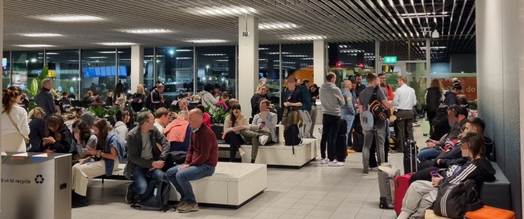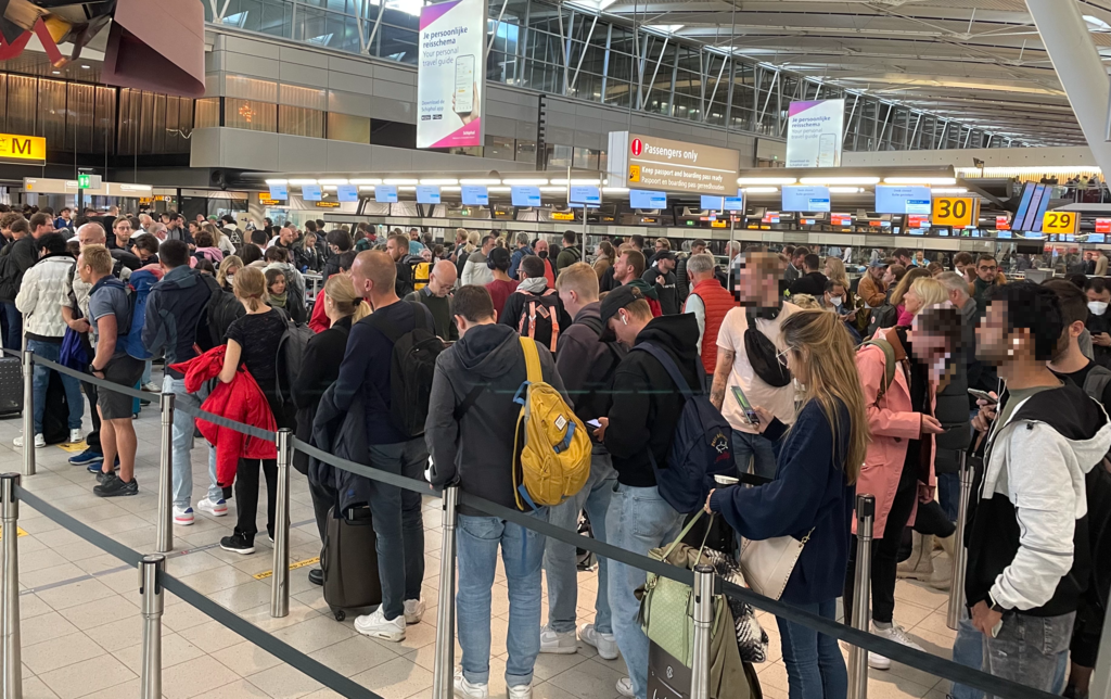 코로나19 사태로 2020년부터 여객이 줄었던 스키폴공항은 2019년 여객의 68%까지 회복되고 있다. 그러나 갑자기 여행객이 몰리면서 보안검색 등 공항운영 인력부족사태가 벌어져 2주 전까지 보안검색을 받기 위해 긴 줄을 섰다가 비행기를 타지 못하거나 수하물을 잃어버린 승객 등 민원 2000건에 대해 돈으로 보상해 줬다.