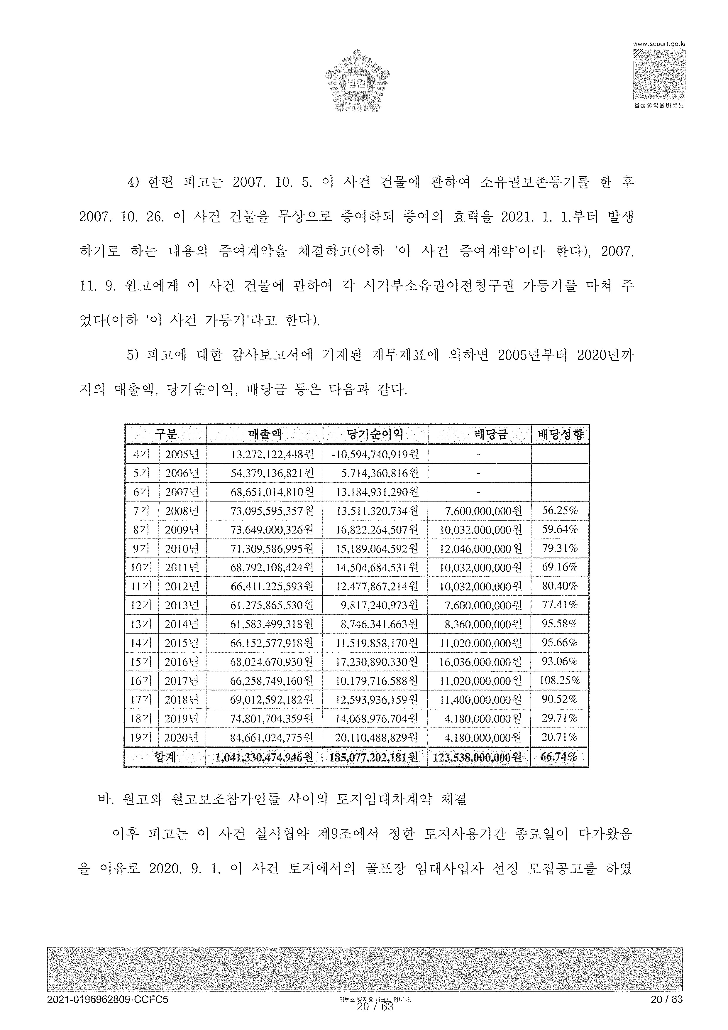 ■스카이72가 인천공항에 골프장을 지어 벌어들인 매출과 순익, 배당금 내역