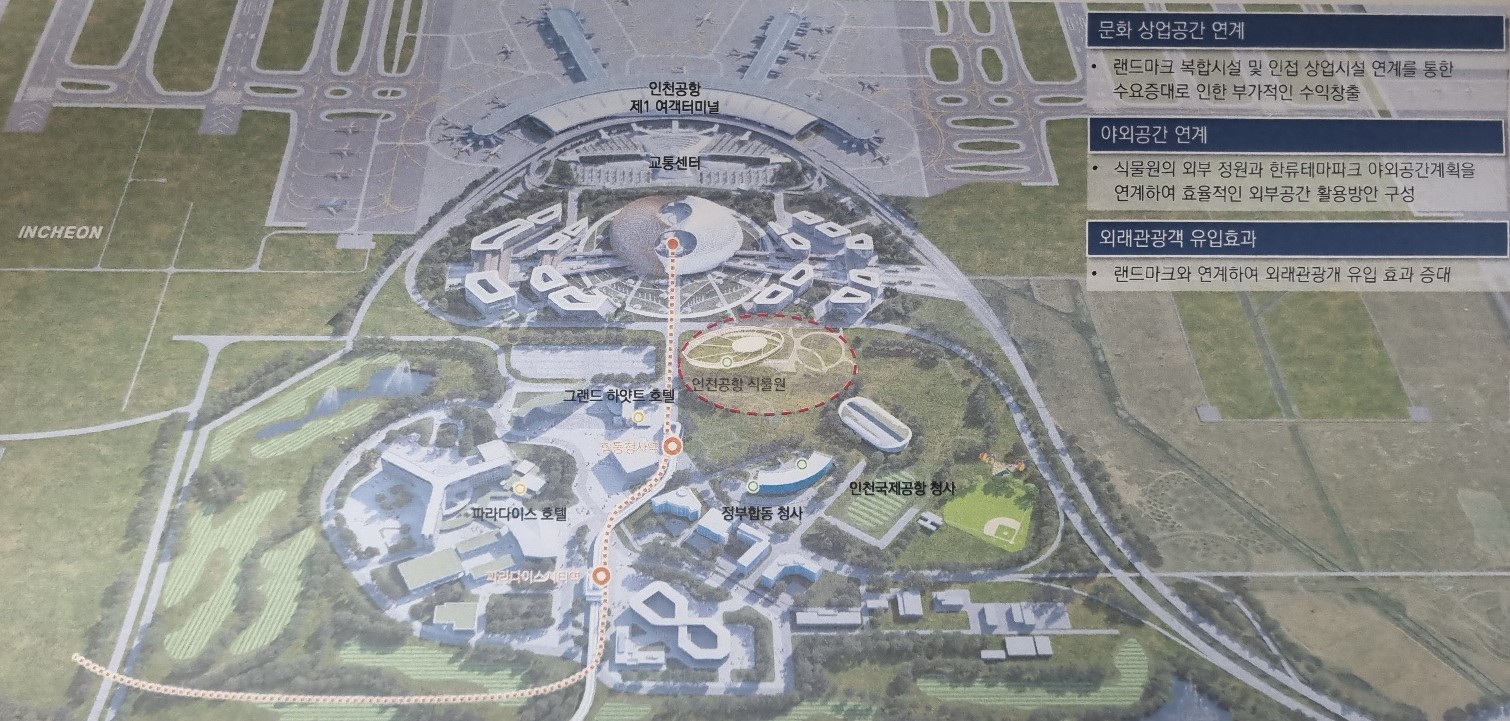인천국제공항공사는 인천공항 국제업무지역(IBC-I) 하얏트호텔 맞은편 주차장 부지에 식물원 건립을 추진하고 있다고 밝혔다. 돔 형태로 만들어질 식물원 내부 공간의 총 면적은 7000㎡ 규모이며, 기존 주차장은 지하에 조성된다.