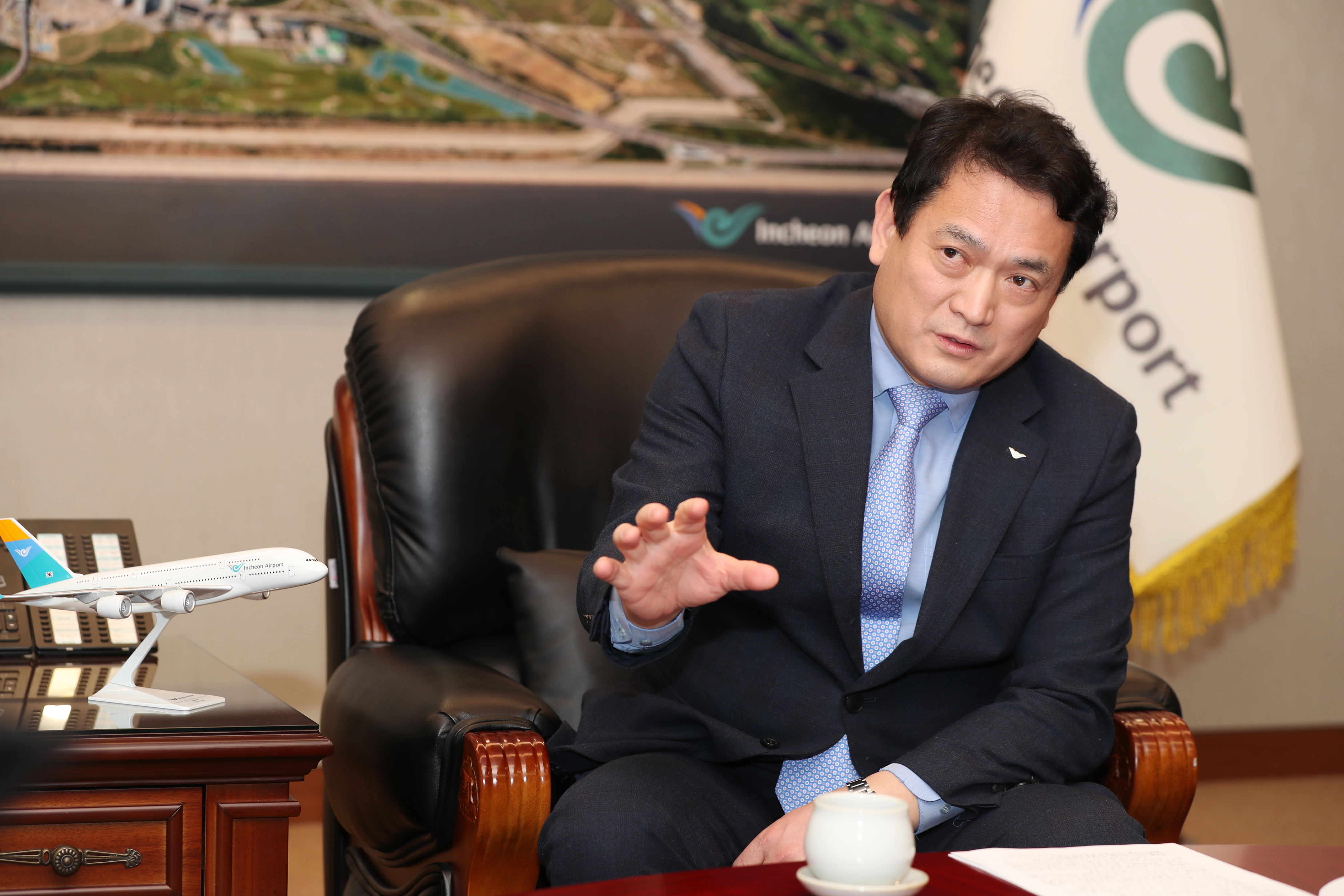 인천공항 북측에 건설중인 동북아 최대 ‘인스파이어 복합리조트’의 10월 개장을 앞두고 있다. 김 사장은 “인스파이어 시설 중 1만5000석의 전문 공연장(아레나)은 K-POP 등 대중공연을 하는데 최적의 시설”이라며 “전기·상수도·도로·공원 등이 개장에 맞춰 공사를 끝낼 수 있도록 성공적으로 지원하겠다”고 말했다.