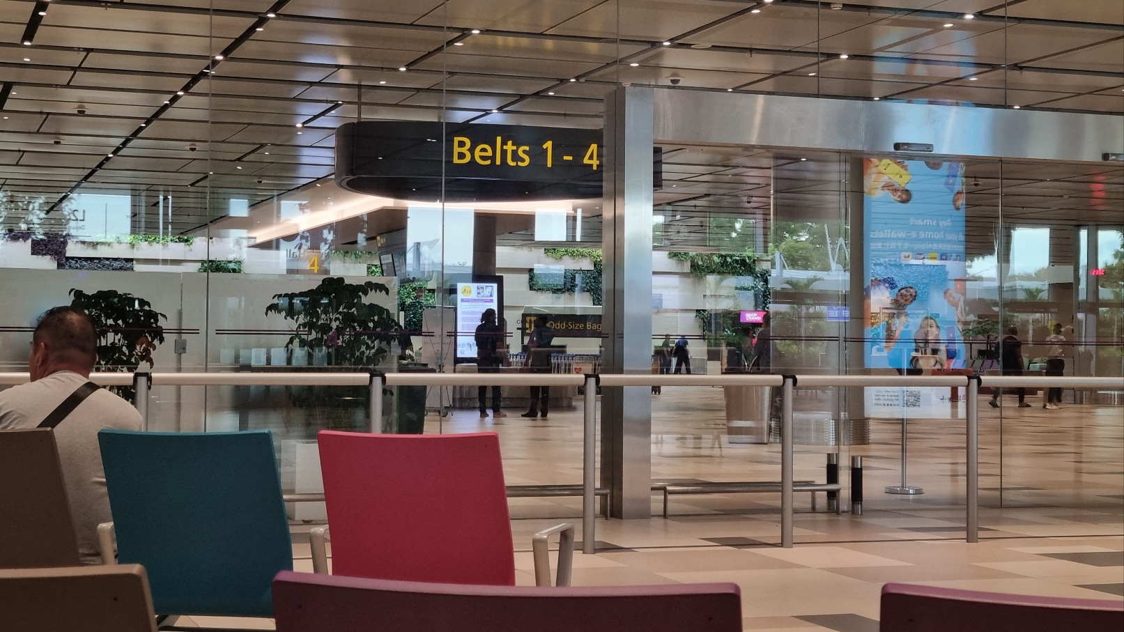 싱가포르 창이공항 제4여객터미널은 1층에 입국심사대와 수하물을 찾는 입국장 함께 있다. 입국장 밖 환영홀에서 입국장 내 수하물을 찾는 모습을 모두 볼 수 있도록 투명유리도 설치됐다.