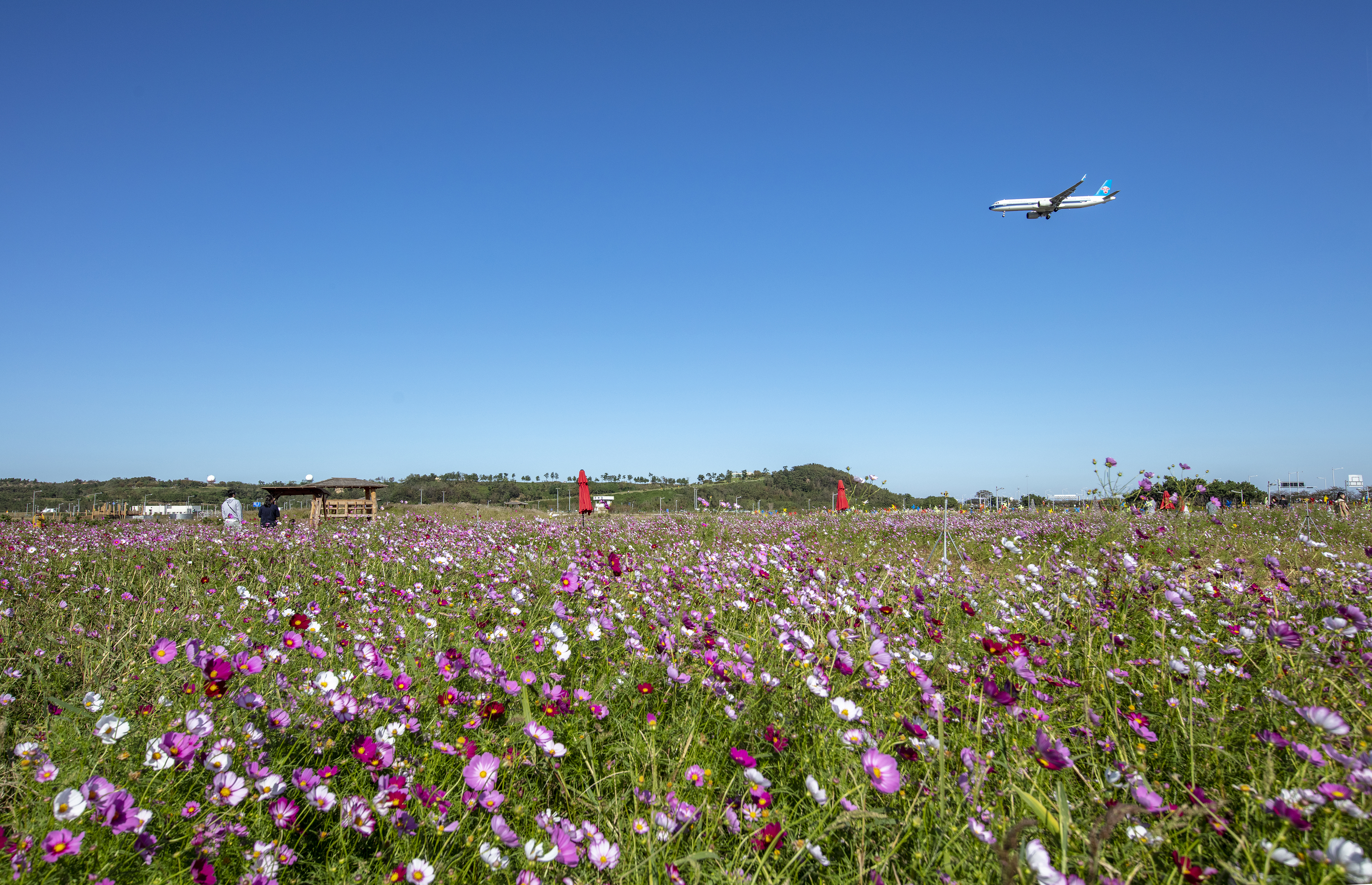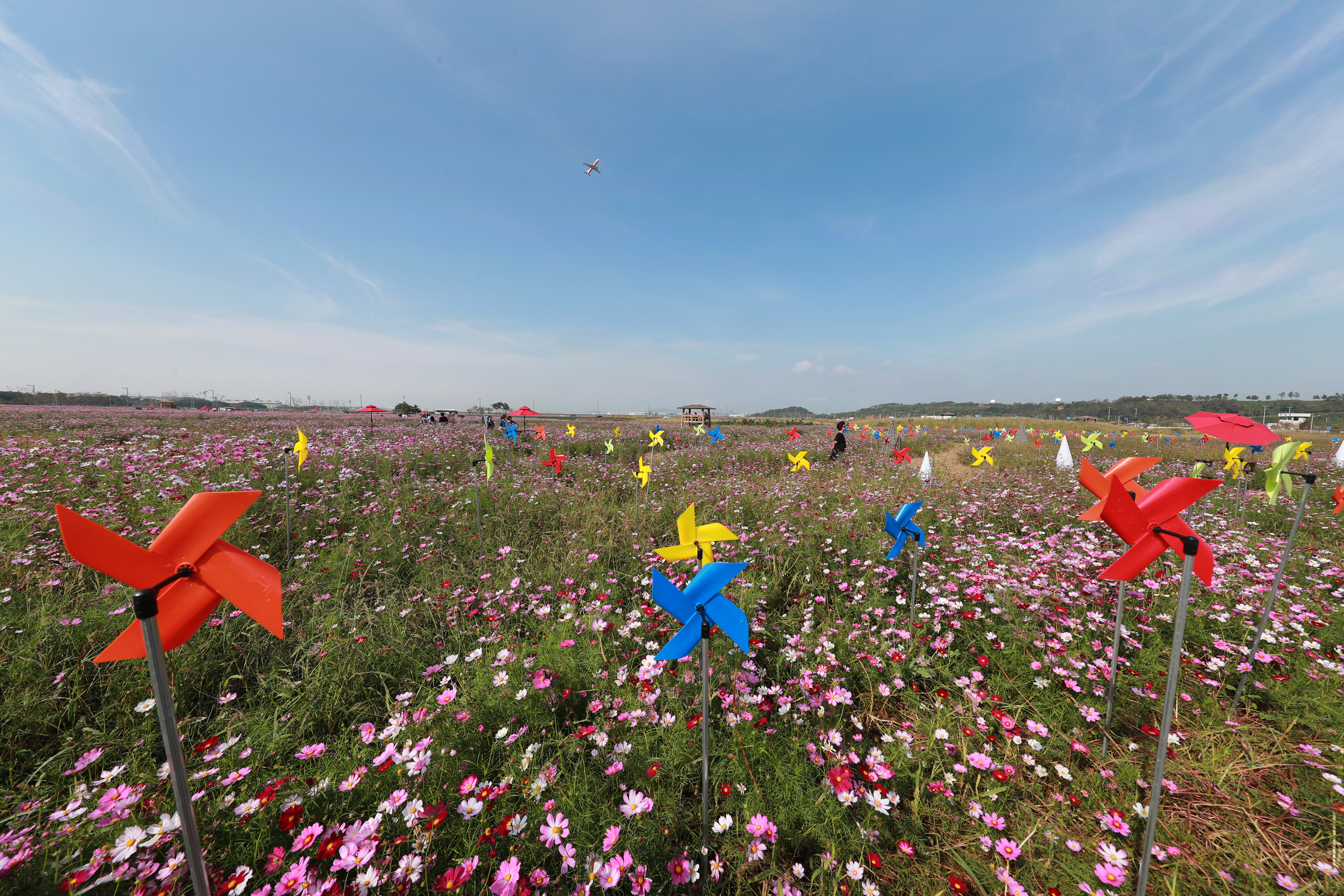 인천국제공항공사는 인천공항 제1여객터미널 입구 하늘정원 3만6000㎡에 심은 코스모스 꽃밭을 26일까지 시민에게 개방한다고 밝혔다. 지난 봄에는 이곳에 유채꽃밭을 조성해 개방했다.